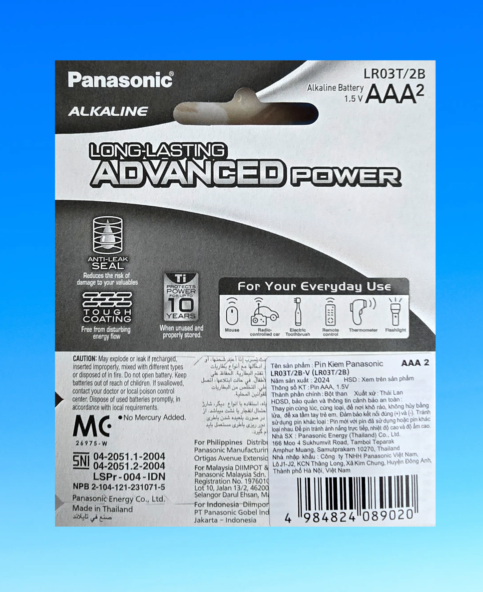 Vỉ 2 viên pin AAA Alkaline Panasonic LR03T – dùng cho điều khiển, micro, đồ chơi…