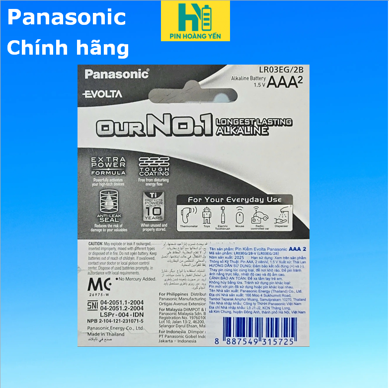 Vỉ 2 viên pin AAA Panasonic Evolta – LR03EG/2B